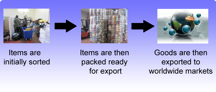 From Within our own our premises in Birmingham, clothes are sorted and exported to worldwide markets. Due to our attention to detail and perfection in grading our customers only receive high quality goods.